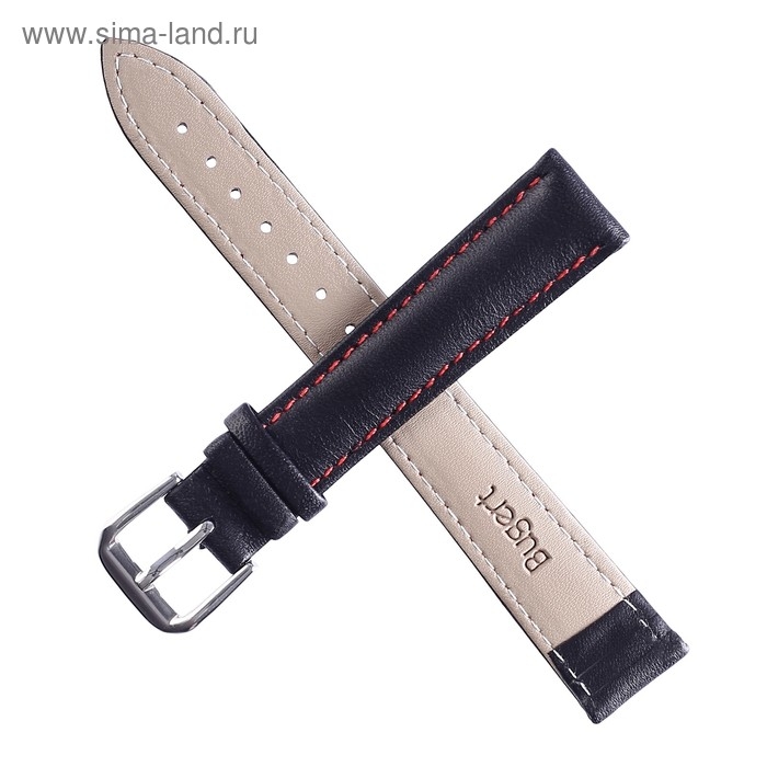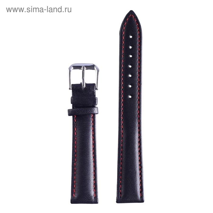 Ремешок для часов "Соломон" 14 мм, натуральная кожа, l-20 см, черно-красный