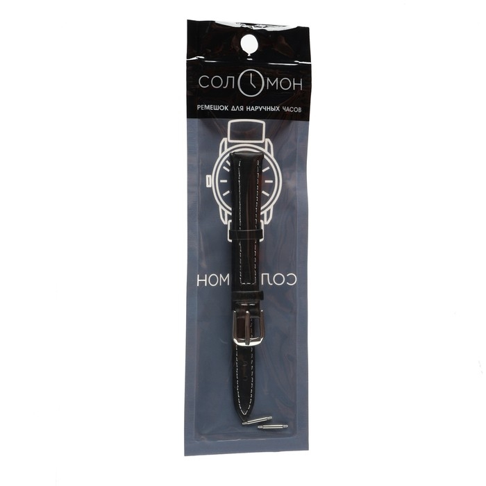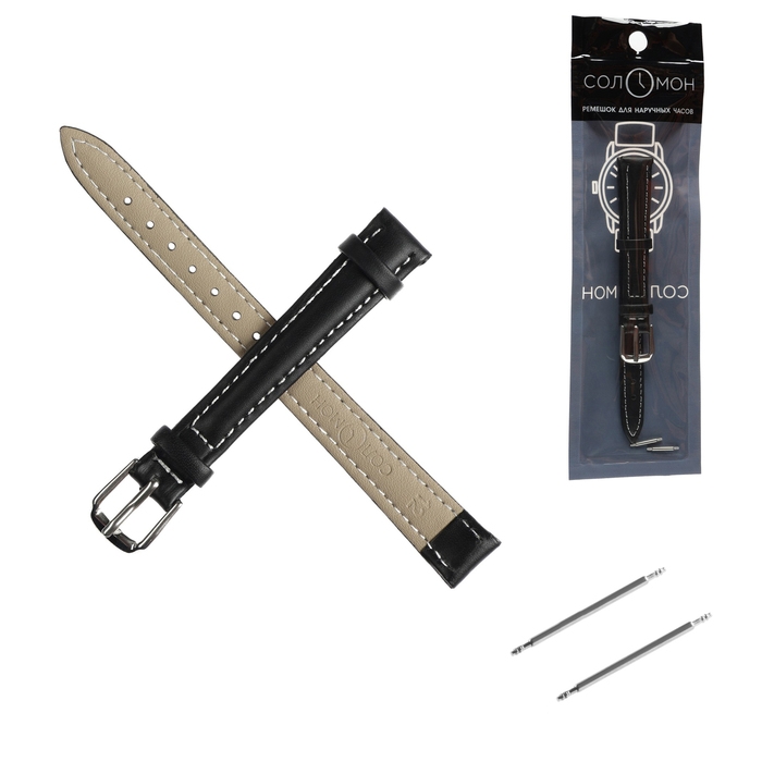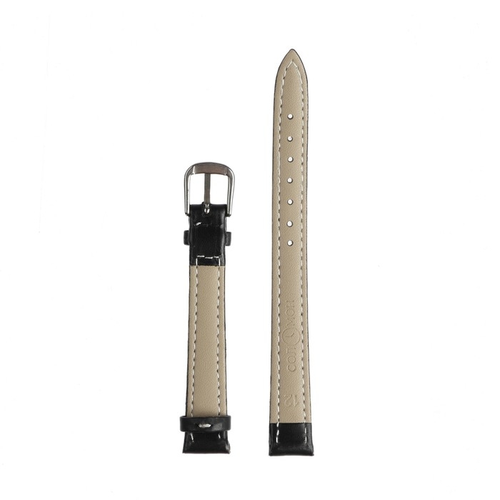 Ремешок для часов "Соломон" 12 мм, натуральная кожа, l-20 см, черный