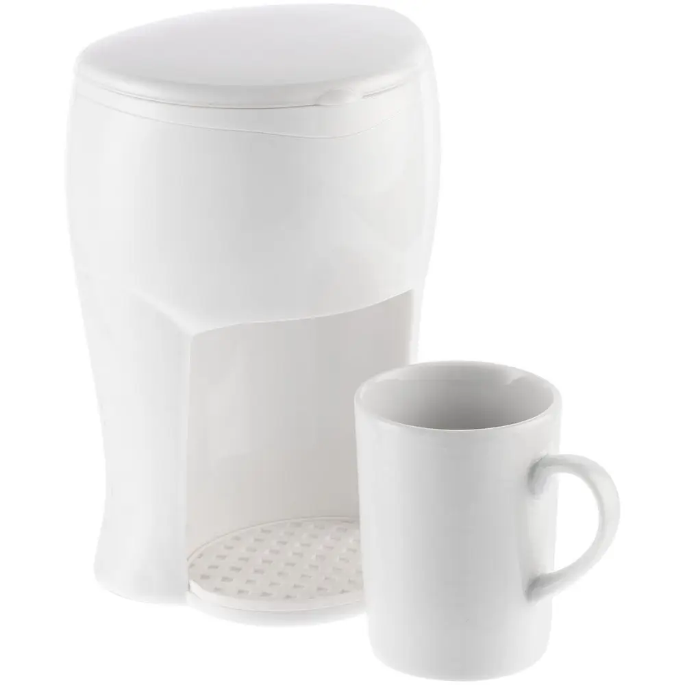 Электрическая кофеварка Elixir — компактная и простая в использовании: она управляется всего одной кнопкой, расположенной на корпусе. Идеально подойдет для приготовления 1 порции кофе в домашних условиях или в офисе — керамическая кружка емкостью 150 мл идет в комплекте.