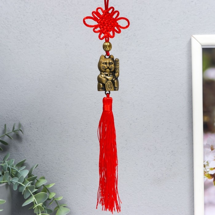 Подвеска "Манэки-нэко с узлом счастья" 24х2,7х1,8 см