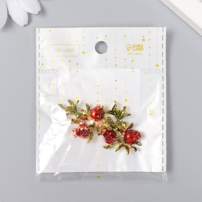 Декор для творчества металл "Гранаты на ветке" 3,2х2,3 см