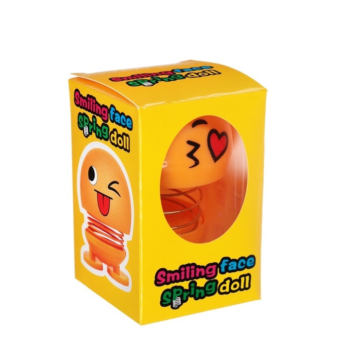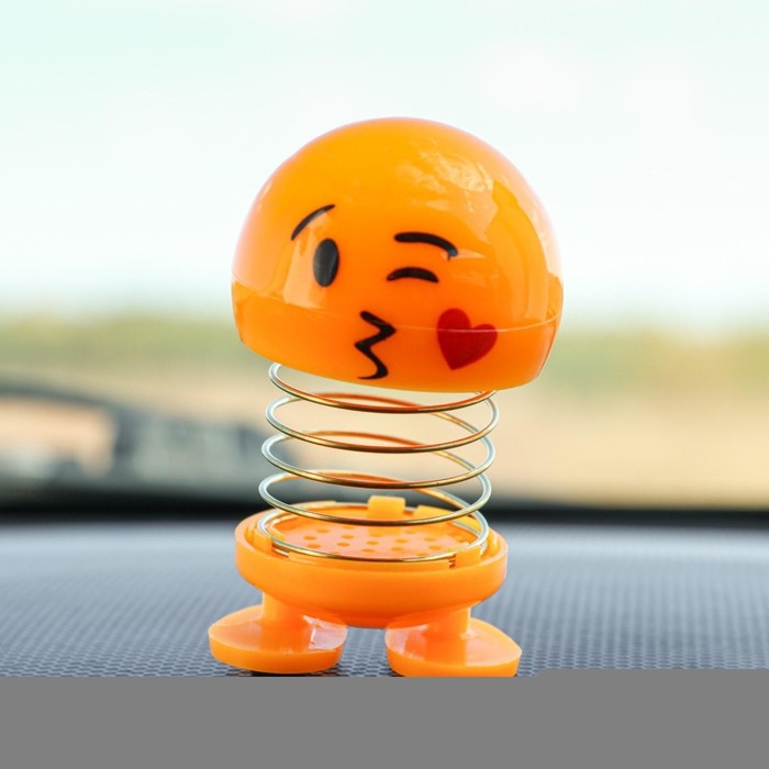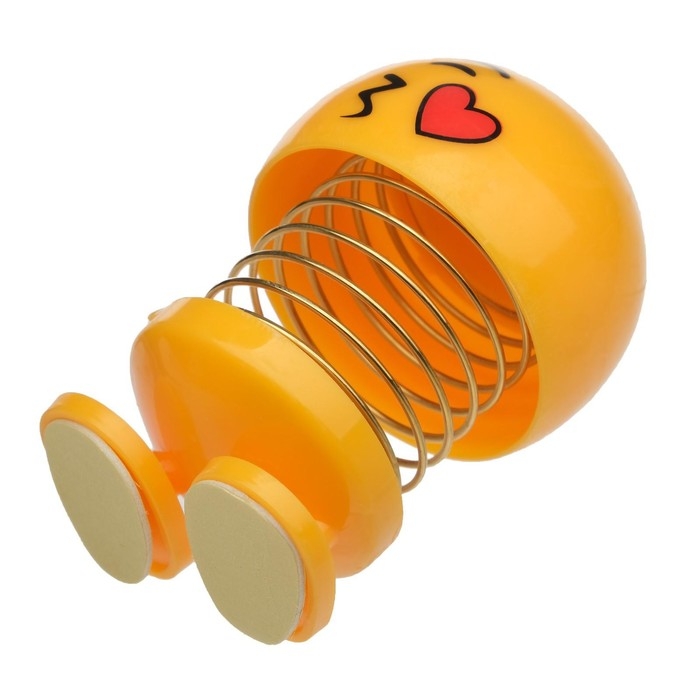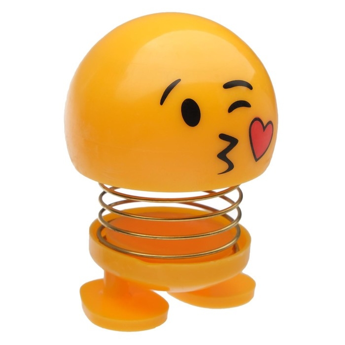 Смайл на пружинке, на панель в авто, сердечко, желтый