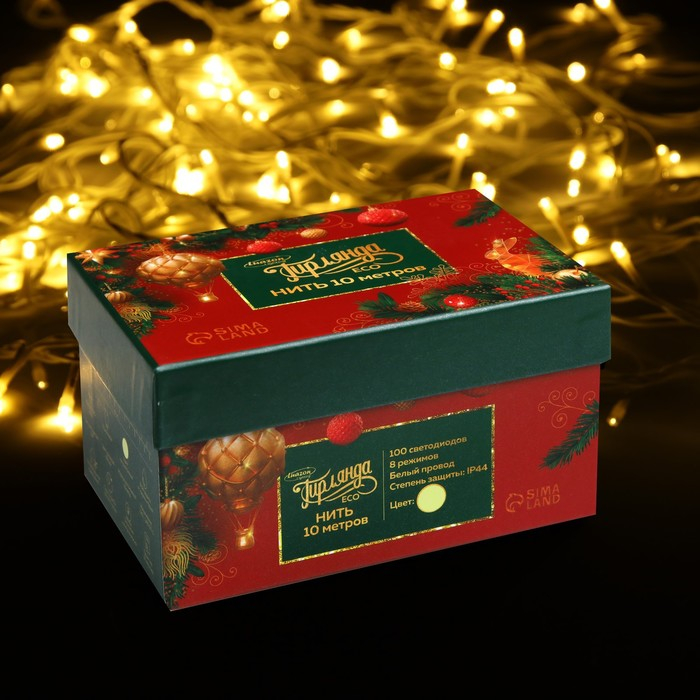 Гирлянда «Нить» 10 м, IP44, белая нить, 100 LED, свечение тёплое белое, 8 режимов, 220 В