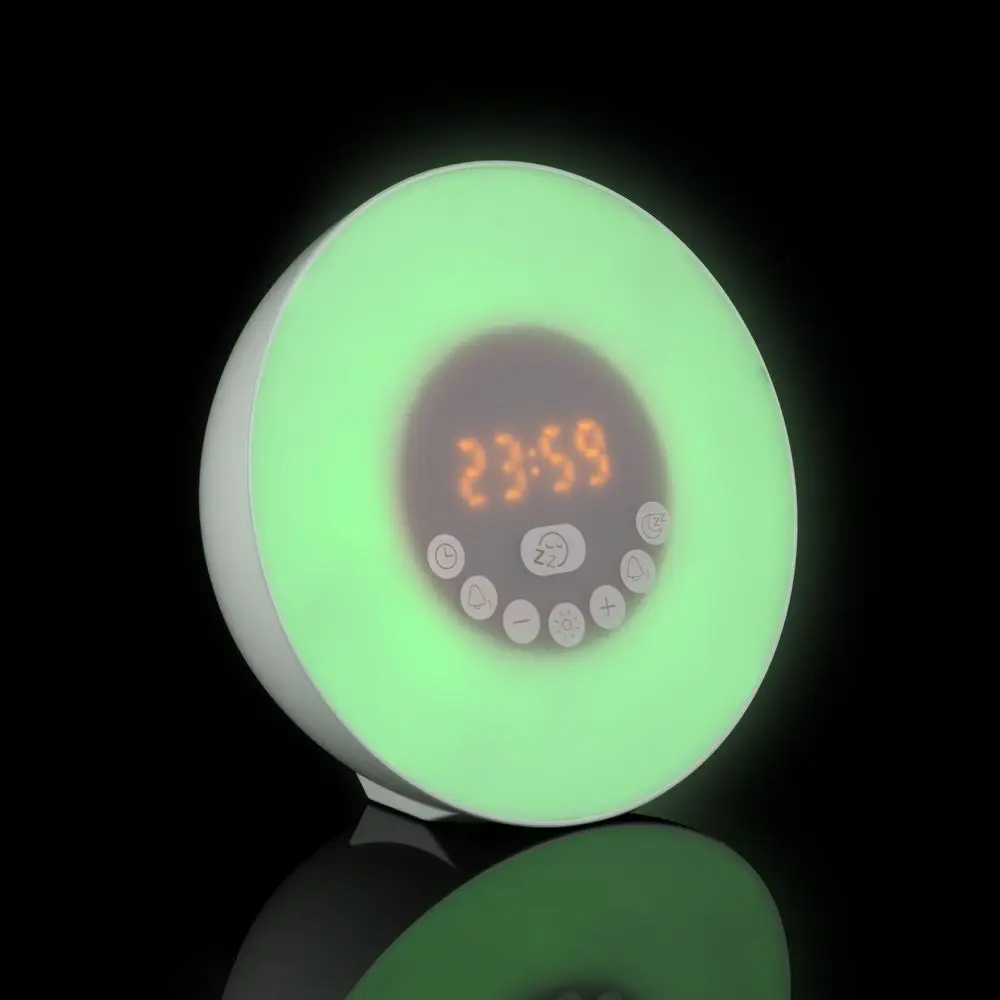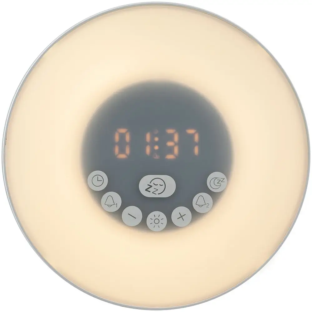 Лампа активируется за некоторое время до настроенного будильника и постепенно увеличивает яркость вплоть до момента, когда вы планируете окончательно проснуться. Эффект мягкого пробуждения можно дополнить звуками природы: шумом волн или пением птиц.
