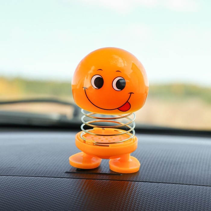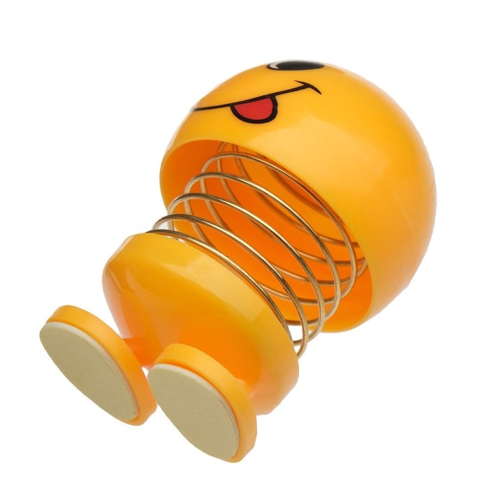 Смайл на пружинке, на панель в авто, язык, желтый