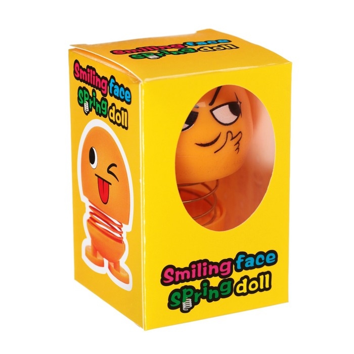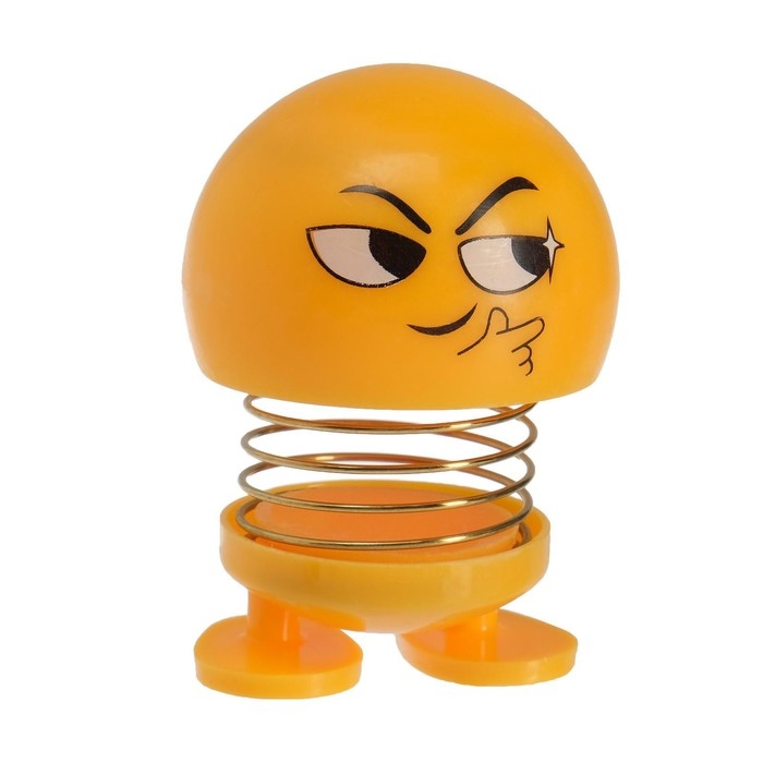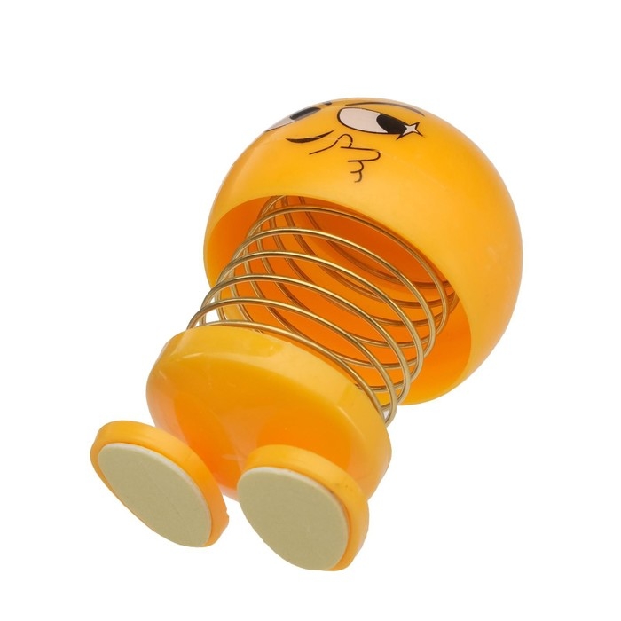 Смайл на пружинке, на панель в авто, хитрый, желтый