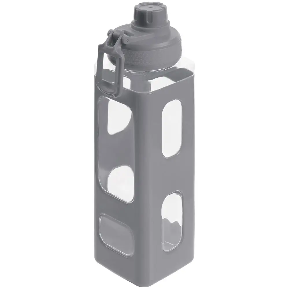 Вместительная квадратная бутылка для воды. Прозрачные окошки позволяют визуально оценить, сколько жидкости осталось внутри.