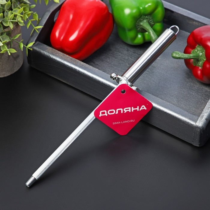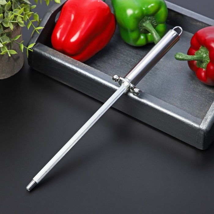 При повседневном использовании лезвие ножа затупляется достаточно быстро, поэтому для придания остроты нужна специальная точилка - Мусат. Она произведена из нержавеющей стали. Такая посуда станет незаменимым прибором на вашей кухне. Изделие поможет сохранить лезвие острым, не занимая много места на кухне. Простота и удобство в сочетании с компактностью делают точилку оптимальным вариантом для использования как дома, так и на природе.