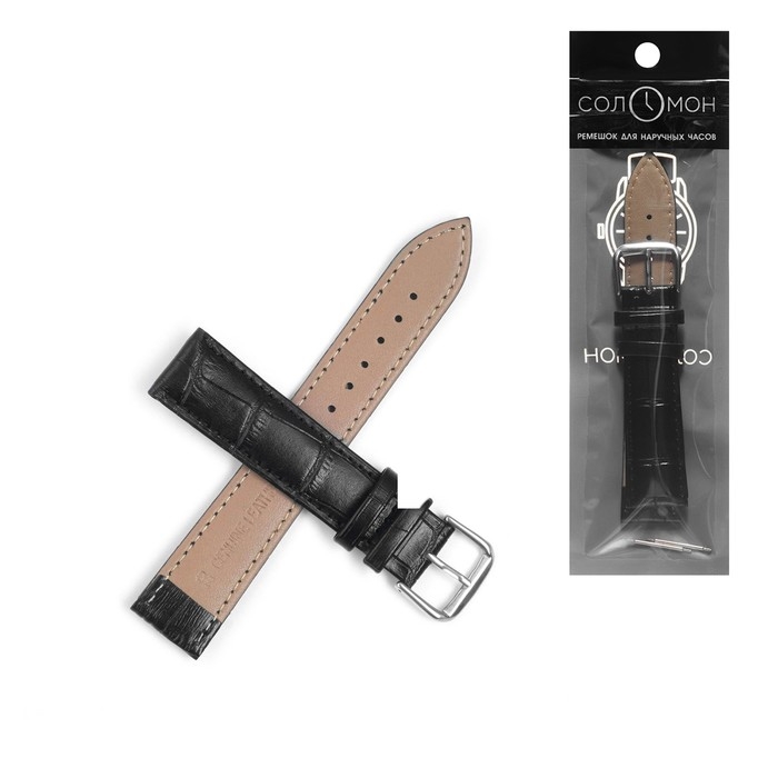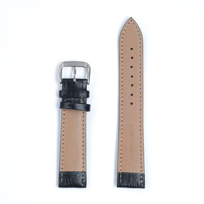 Ремешок для часов "Соломон", 20 мм, натуральная кожа, l-20 см, черный с тиснением
