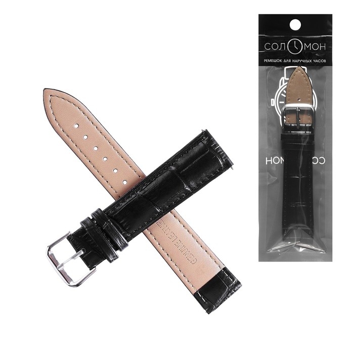 Ремешок для часов "Соломон", 22 мм, натуральная кожа, l-20 см, черный