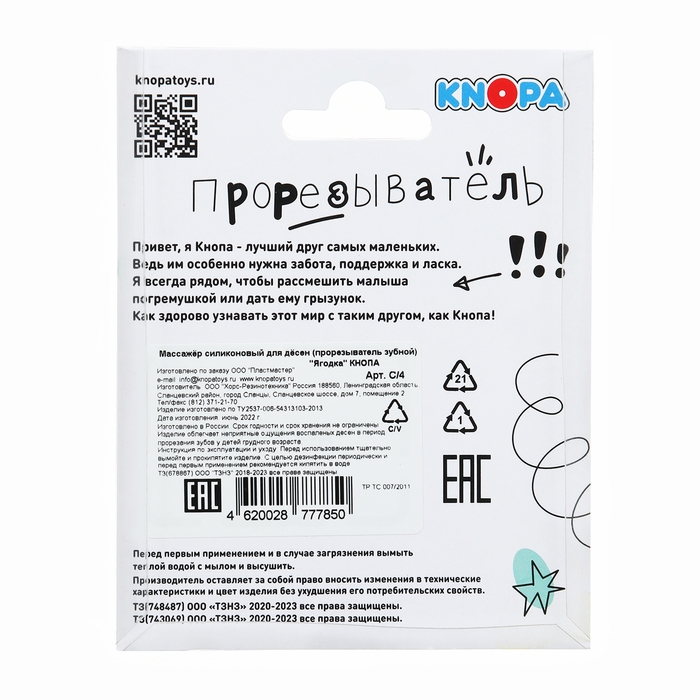 Прорезыватель силиконовый «Клубничка», цвет МИКС, КНОПА