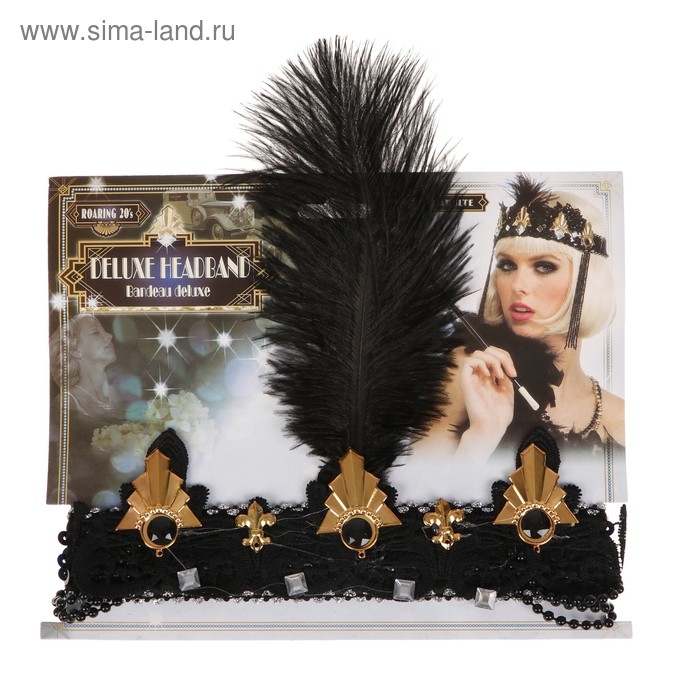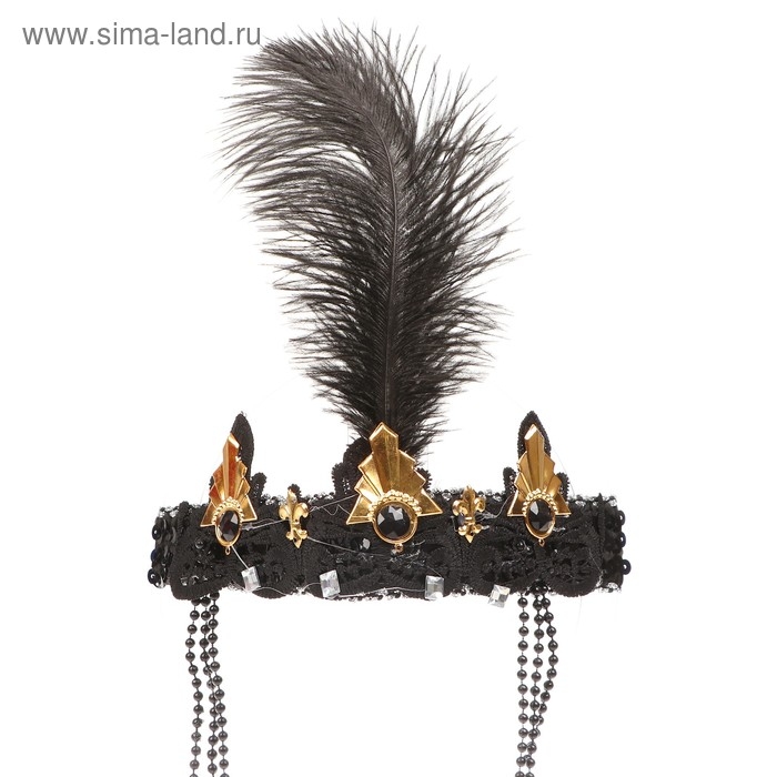 Повязка на голову с пером карнавальная, цвет черный