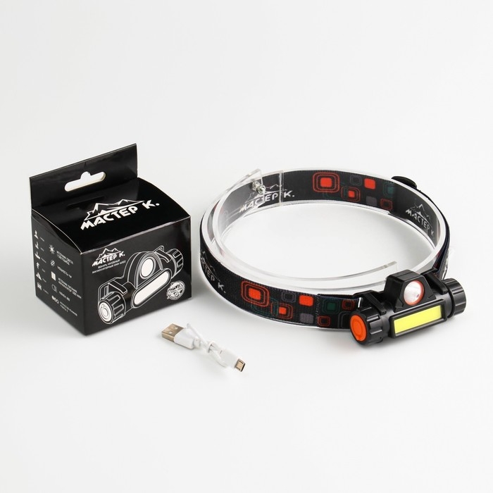 Фонарь налобный аккумуляторный "Мастер К", 4 LED, 2 COB, 2 аккумуляторных батареи, USB