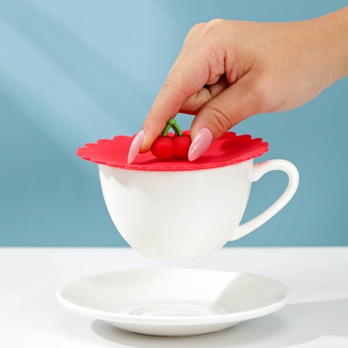 Крышка - непроливайка силиконовая Доляна «Вишенка», d=11 см, цвет красный