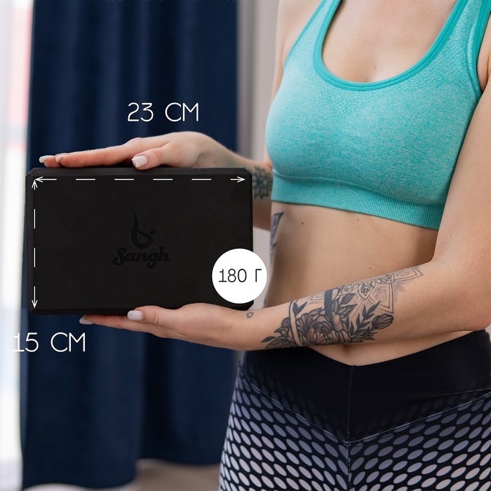 Блок для йоги Sangh, 23х15х8 см, цвет чёрный