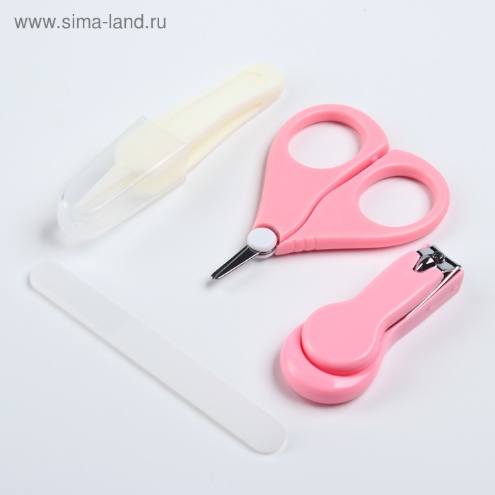 Детский маникюрный набор (ножницы, книпсер, пилка), цвет розовый