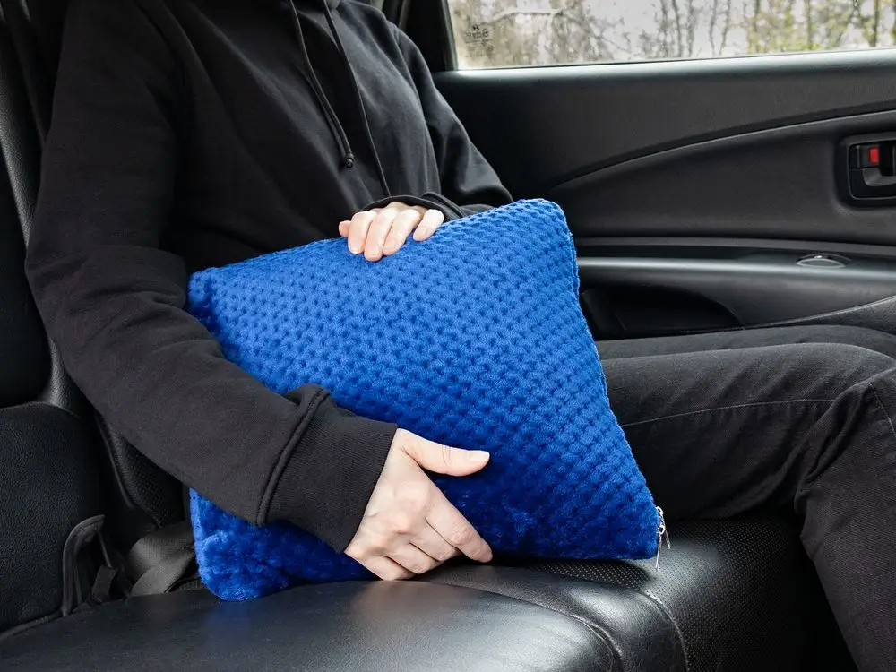 Мягкий плед из длинноворсового флиса легко трансформируется в подушку для удобного хранения — и сладкой послеобеденной дремы.