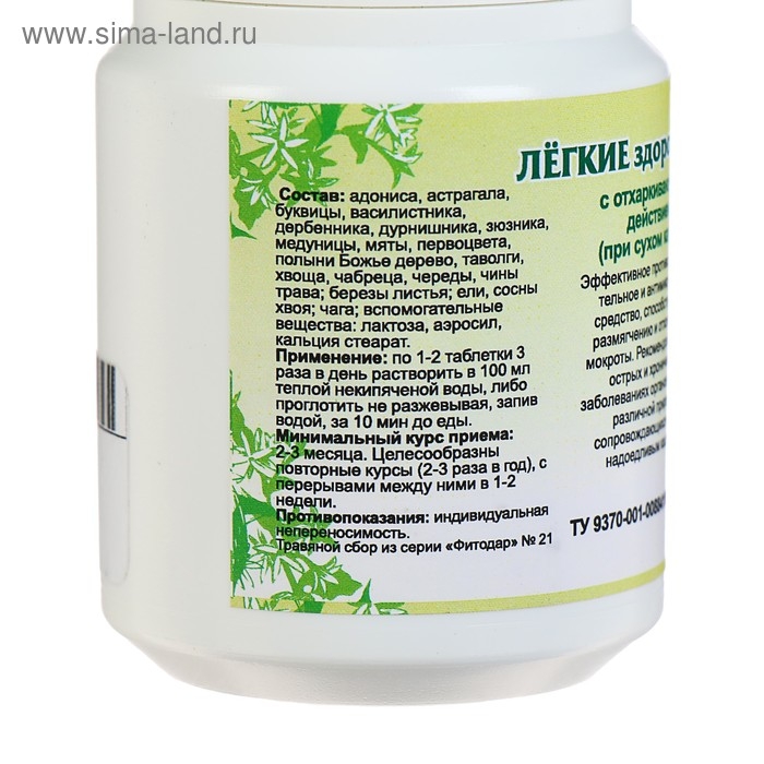 Состав: адониса, астрагала, буквицы, дербенника, дурнишника, зюзника, медуницы, мяты, первоцвета, полыни Божье дерево, таволги, хвоща, чабреца, череды, чины трава, березы листья, ели, сосны хвоя, чага, вспомогательные вещества: лактоза, аэросил, кальция стеарат.