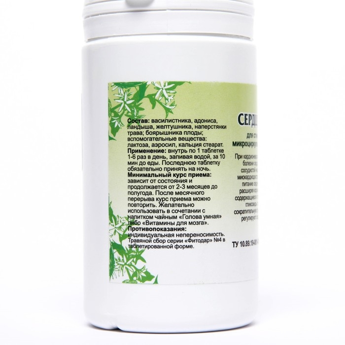Состав: адониса, василистника трава, березы, наперстянки листья, боярышника плоды, вспомогательные вещества: лактоза, аэросил, кальция стеарат.