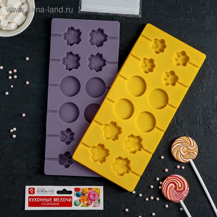Форма силиконовая для леденцов «Солнечный день», 14×14×1,5 см, 8 ячеек, с палочками, цвет МИКС