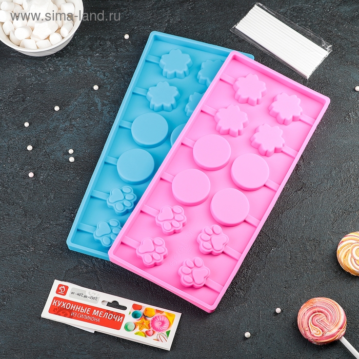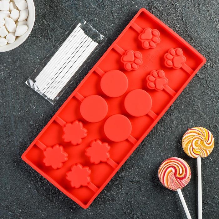 Форма для леденцов Доляна «Вкусная сладость», силикон, 26,5×11,5 см, 12 ячеек (d=3,5 см), с палочками, цвет МИКС