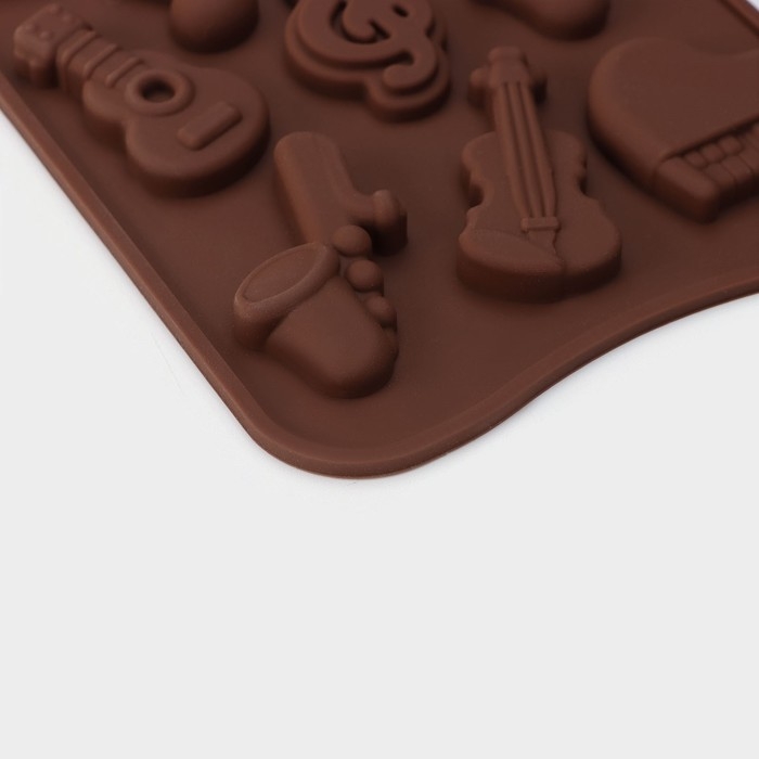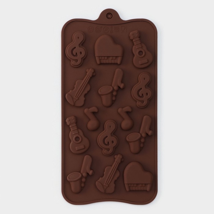 Форма для кондитерских украшений Доляна «Музыкальные инструменты», силикон, 21,5×10,5 см, 14 ячеек, цвет МИКС