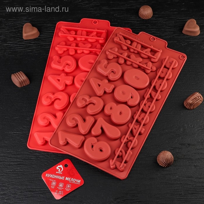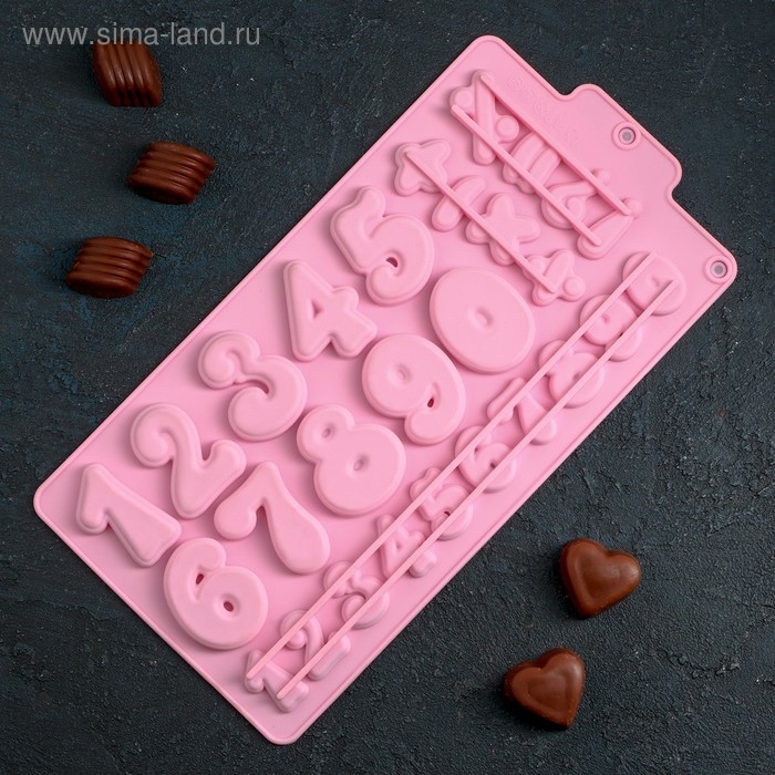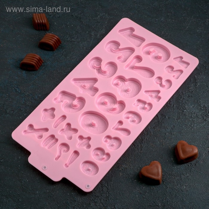 Форма для кондитерских украшений Доляна «Цифры», силикон, 30,2×16 см, 28 ячеек, цвет МИКС