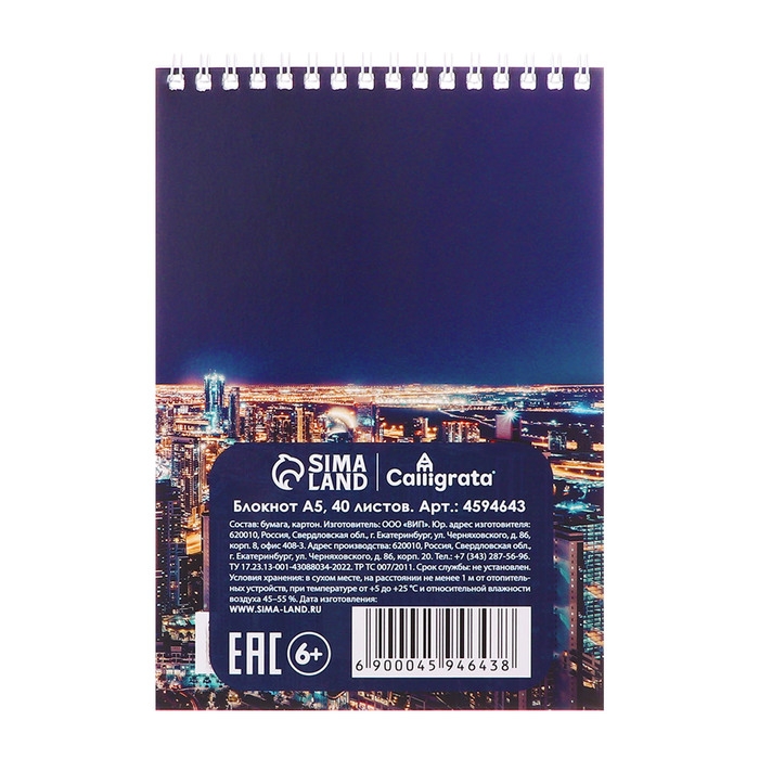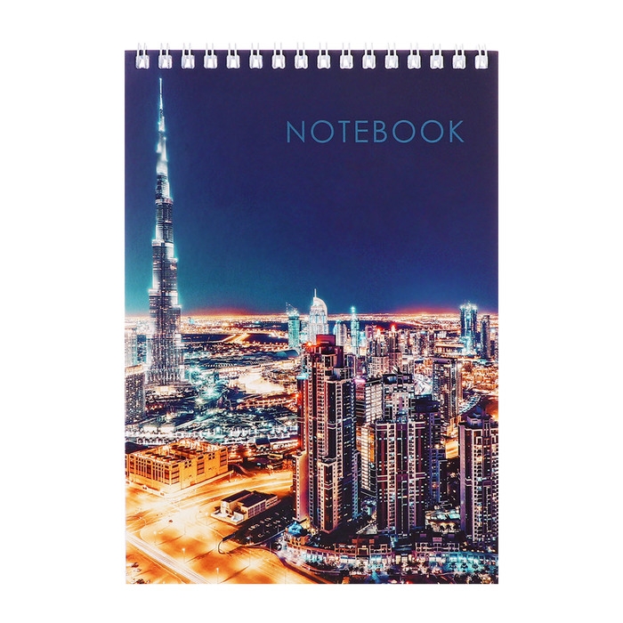 Блокнот А5, 40 листов в клетку на гребне "Мегаполис", обложка мелованный картон, блок офсет