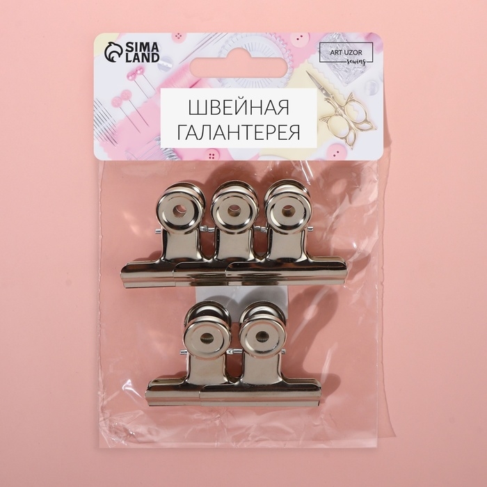 Зажимы для кроя, 5,2 см, 5 шт, цвет серебряный