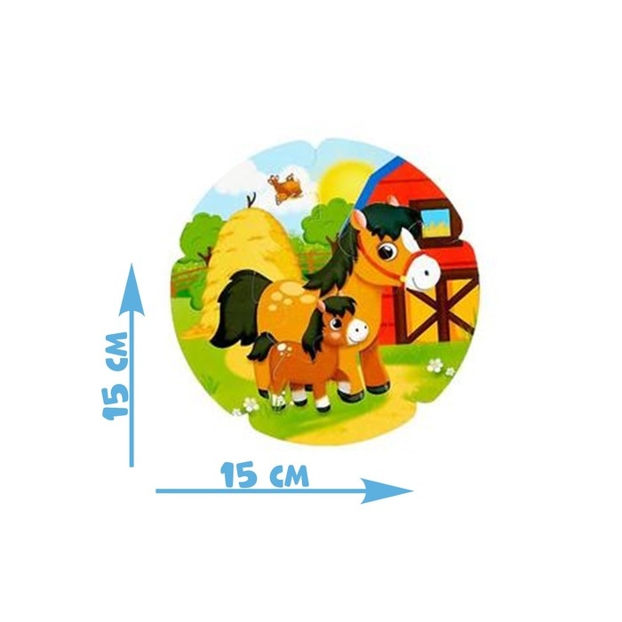 - Из 30 деталей ребёнок соберёт 5 круглых пазлов диаметром 15 см.