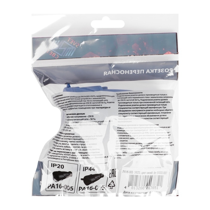 Розетка переносная 16-005, 16 А, 250 В, IP44, с з/к, с заглушкой, каучук, синяя