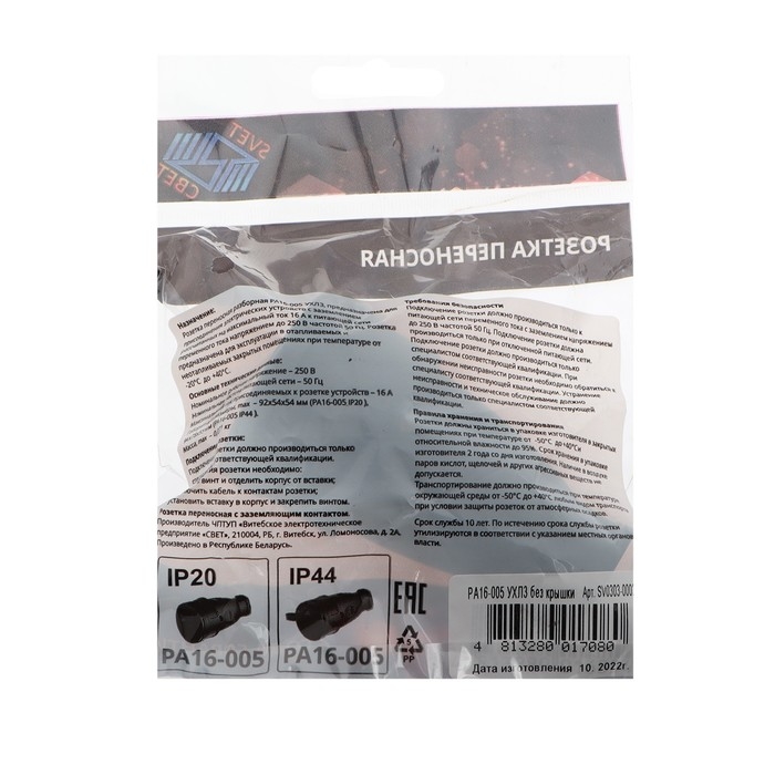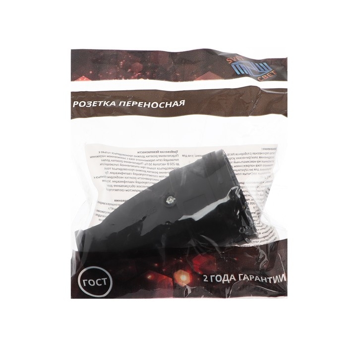 Розетка переносная РА 16-005, 16 А, 250 В, IP20, с з/к, без заглушки, каучук, черная