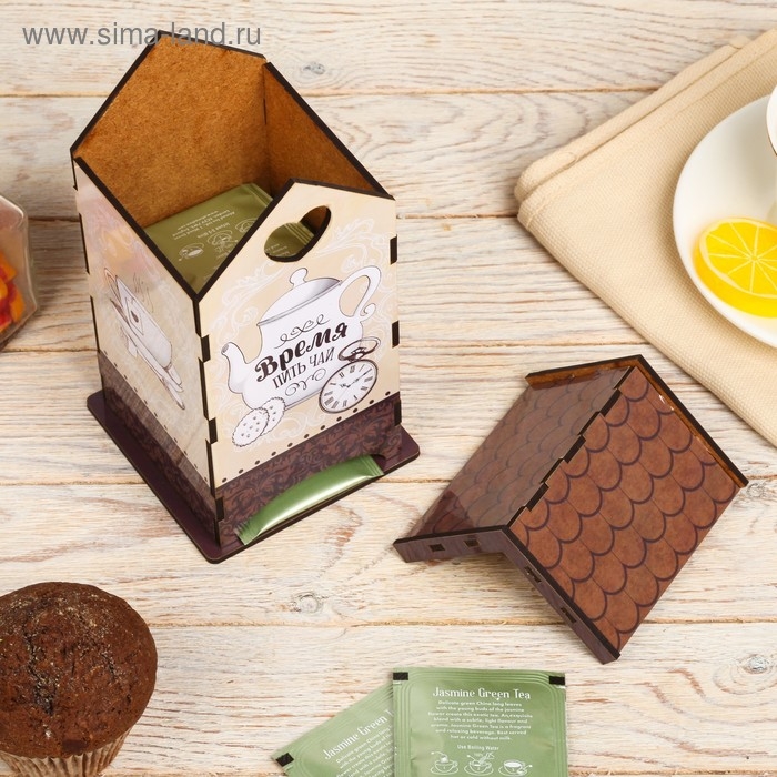 Чайный домик – это необычная упаковка для хранения чая. Он поможет навести порядок на обеденном столе, а также станет его яркой деталью. Чайные пакетики закладываются сверху внутрь домика и вынимаются снизу.