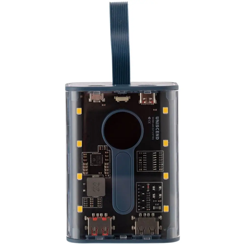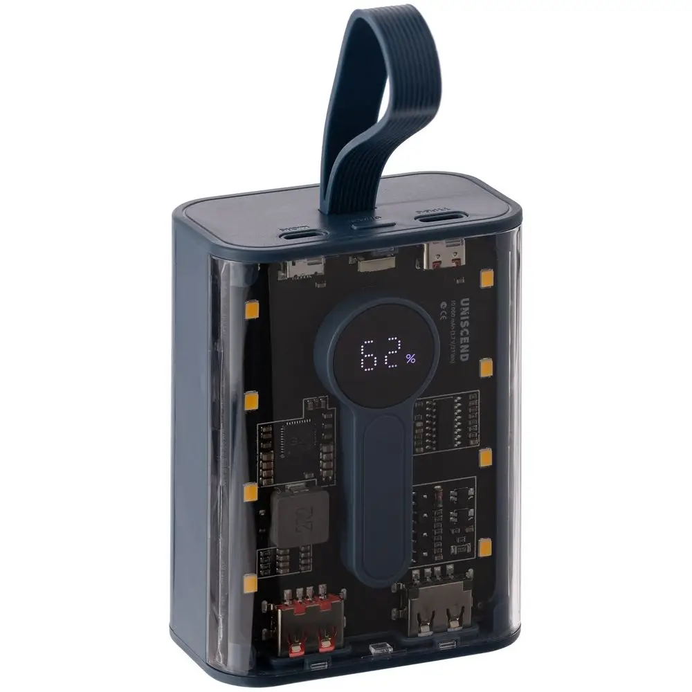 Необычный дизайн коллекции Uniscend Trellis выгодно выделяет новую серию устройств из прозаичного ряда внешних аккумуляторов. Они не поддерживают беспроводную зарядку, зато точно привлекают внимание: под прозрачной панелью хорошо видны электронная начинка и цифровой индикатор оставшегося в аккумуляторе заряда, а мягкая подсветка светодиодами теплого оттенка логичным образом дополняет технологичный внешний вид.