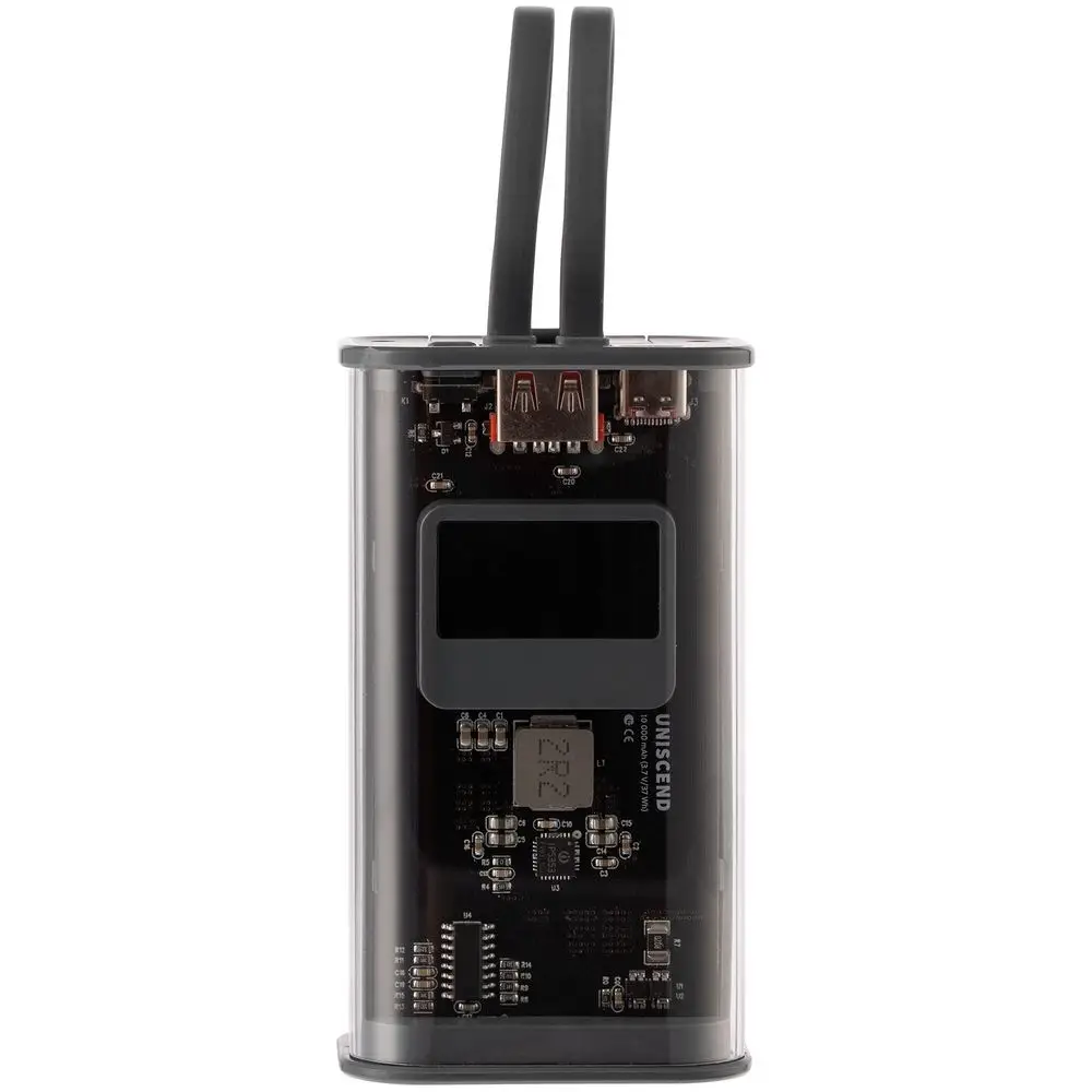 Необычный дизайн коллекции Uniscend Trellis выгодно выделяет новую серию устройств из прозаичного ряда внешних аккумуляторов. Они не поддерживают беспроводную зарядку, зато точно привлекают внимание: под прозрачной панелью хорошо видна электронная начинка. Цифровой индикатор показывает оставшийся в аккумуляторе заряд, а также отображает показатели зарядного процесса Quick Charge в вольтах и амперах.