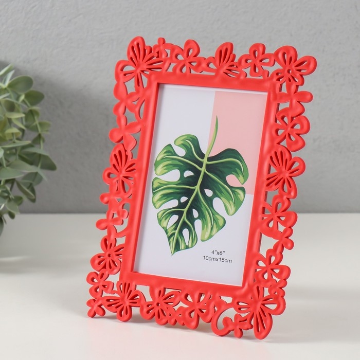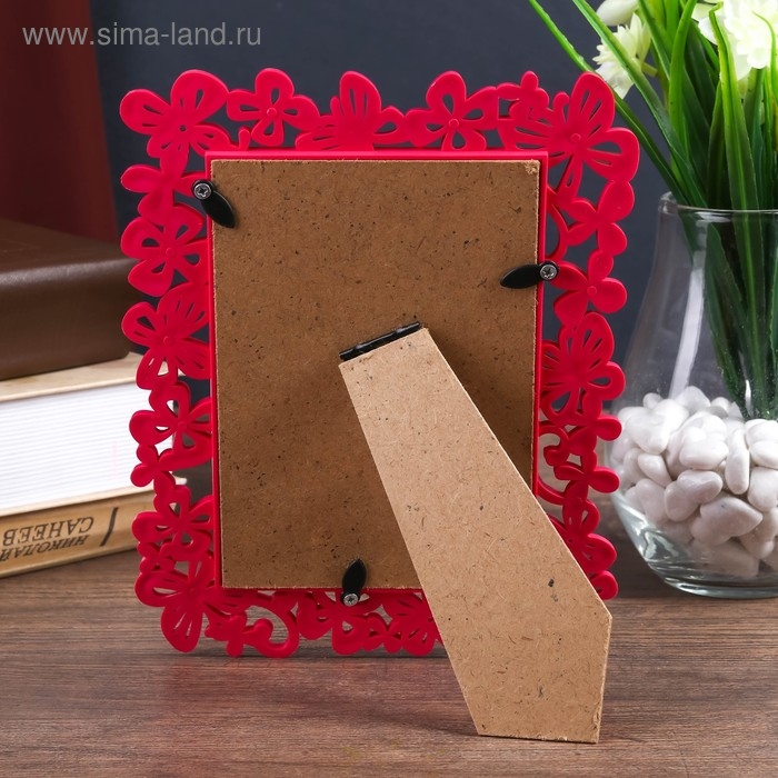 Фоторамка пластик 10х15 см "Бабочки" малиновая 20,5х15,5 см