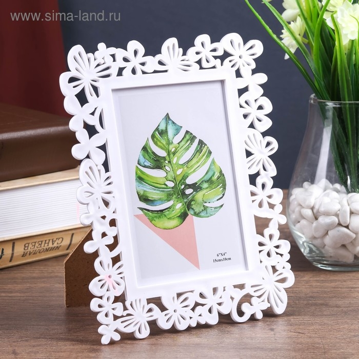 Фоторамка пластик 10х15 см "Бабочки" белая 20,5х15,5 см