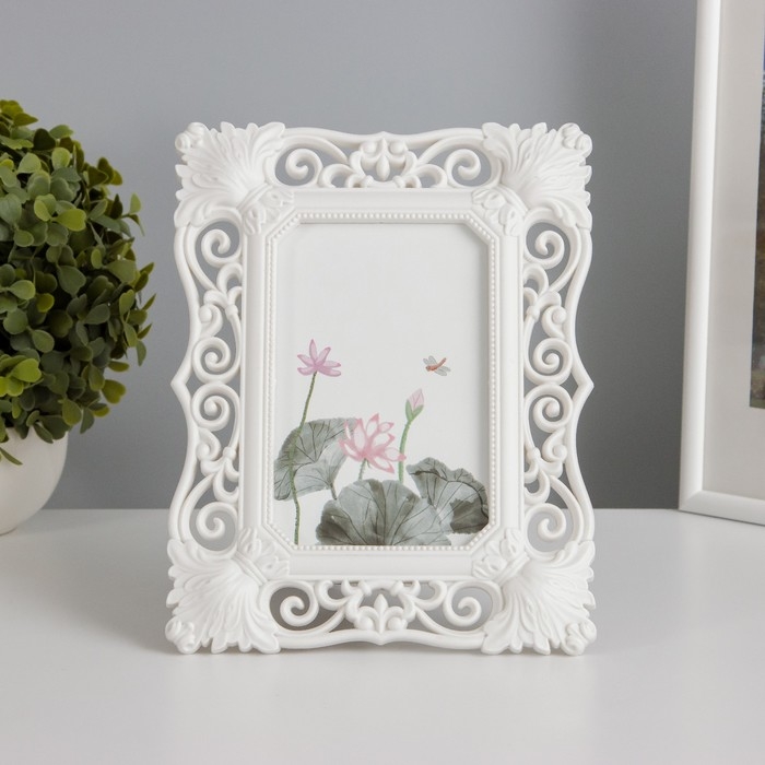 Фоторамка пластик 10х15 см "Рококо" белая 22,5х17,8 см