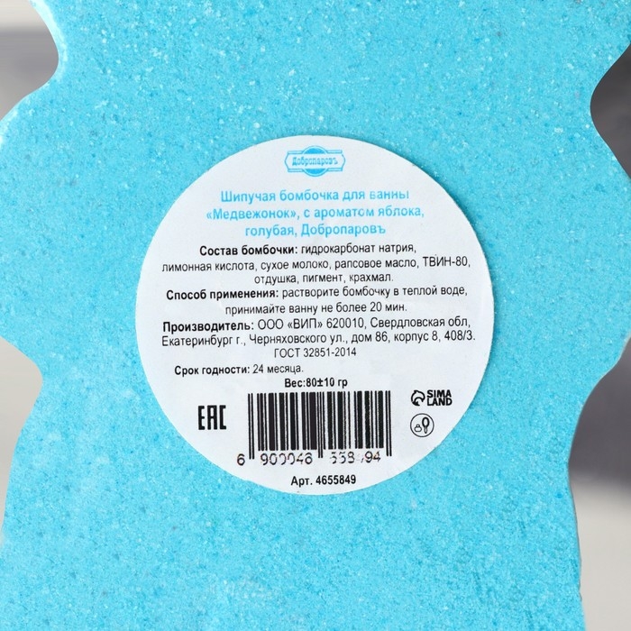 Бомбочка для ванны "Медвежонок" с ароматом яблока, голубая, 80 г