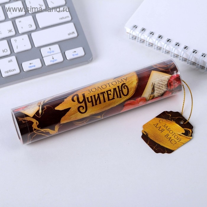 Ручка в тубусе «Золотому учителю, С Уважением!», пластик, синяя паста, 1.0 мм