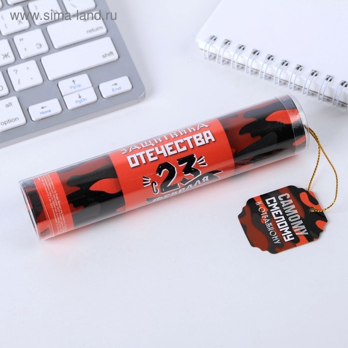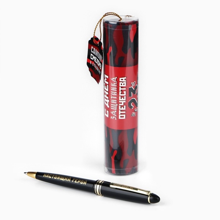 Ручка шариковая синяя паста в тубусе "Смелому и отважному", пластик