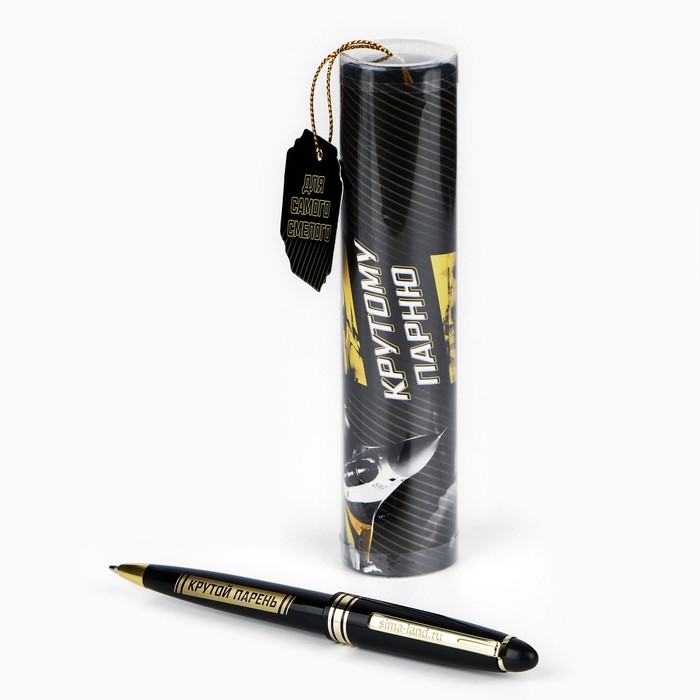 Ручка шариковая синяя паста в тубусе "Для самого смелого", пластик
