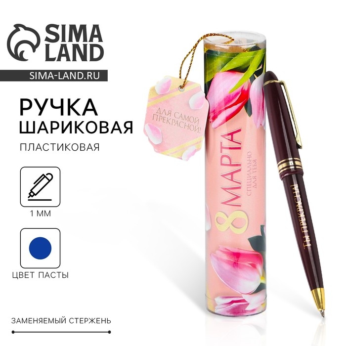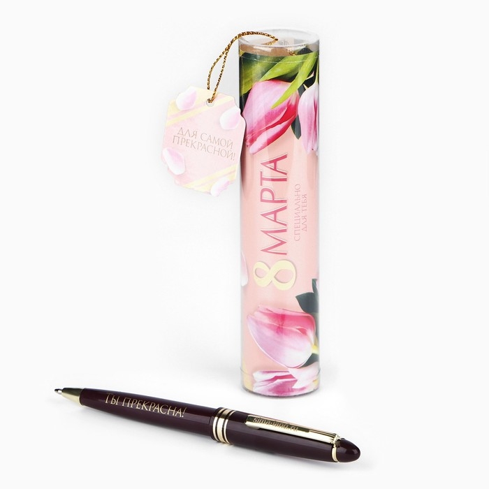 Ручка шариковая синяя паста в тубусе "Для самой прекрасной!", пластик