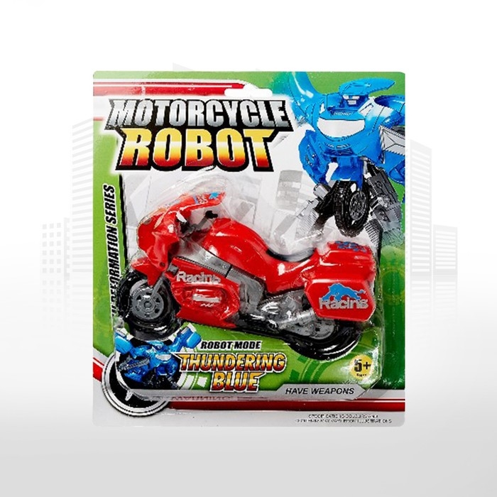 Невероятная гонка и захватывающие космические приключения ждут малыша с роботом «Мотоцикл». Этот удивительный пришелец способен в виде транспортного средства с лёгкостью догнать любого противника, а трансформируясь в робота — одержать над врагом абсолютную победу