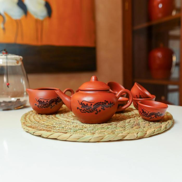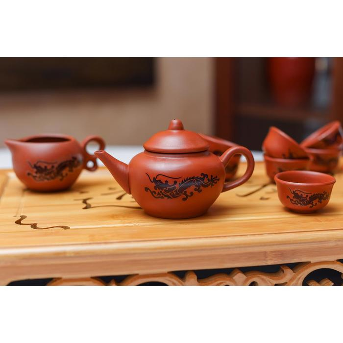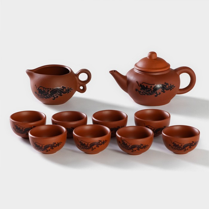 Набор для чайной церемонии керамический «Дракон», 10 предметов: 8 пиал 35 мл, чайник 200 мл, чахай 150 мл, цвет коричневый включает изделия из качественной керамики оригинальной формы, каждое из которых выполнено в восточной манере.