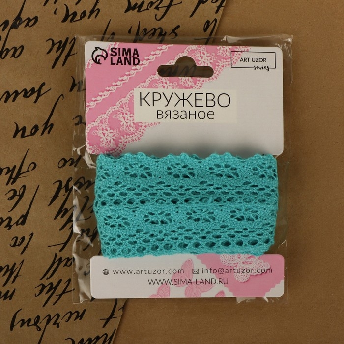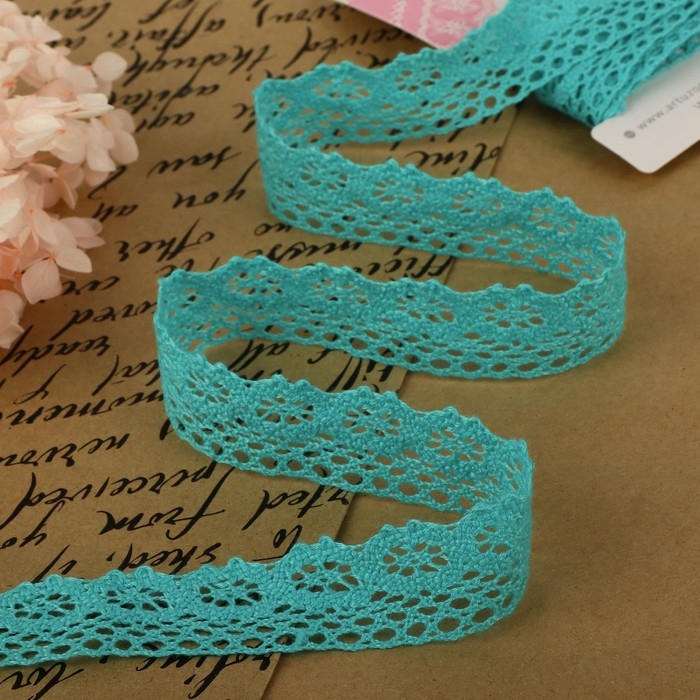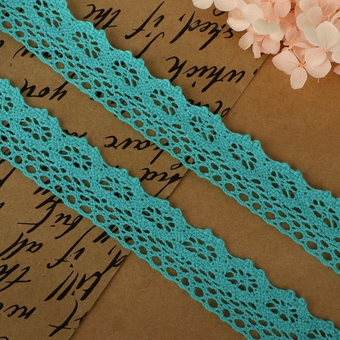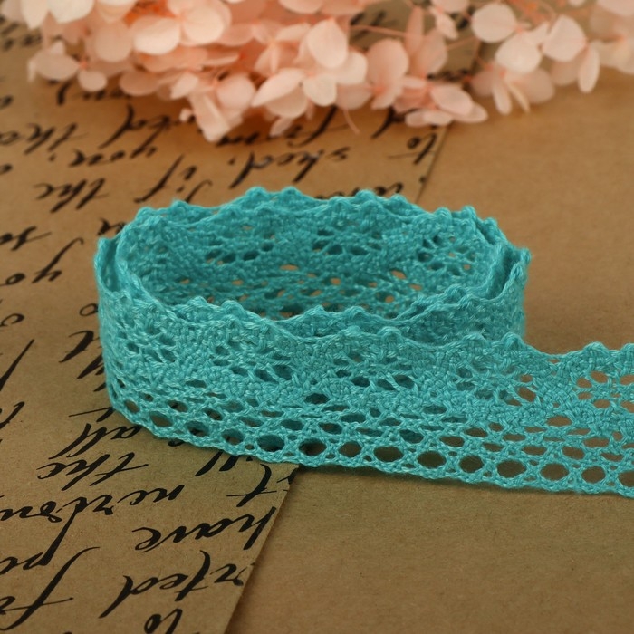 Кружево вязаное, 25 мм × 2,7 ± 0,5 м, цвет бирюзовый