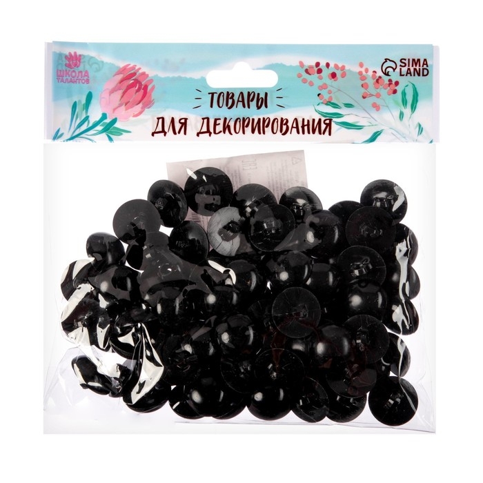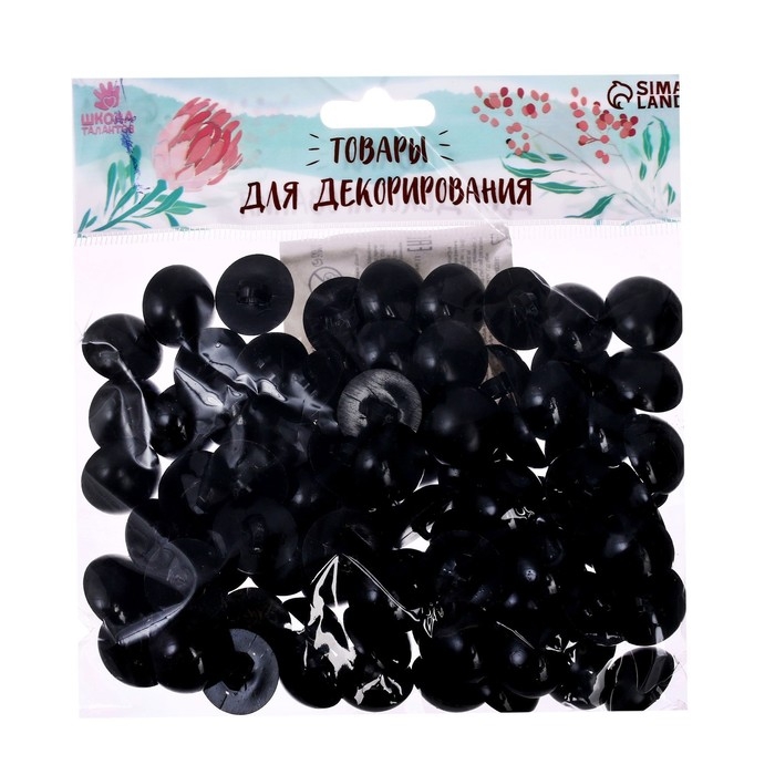 Глаза пришивные, набор 60 шт., размер 1 шт. — 0,9 см, цвет чёрный