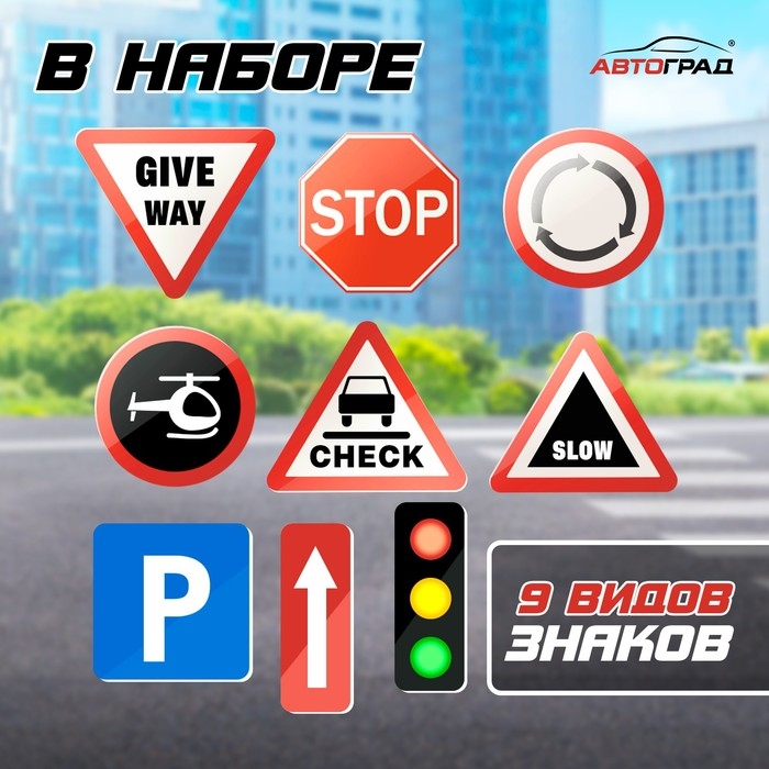 - Количество видов дорожных знаков — 9 шт.