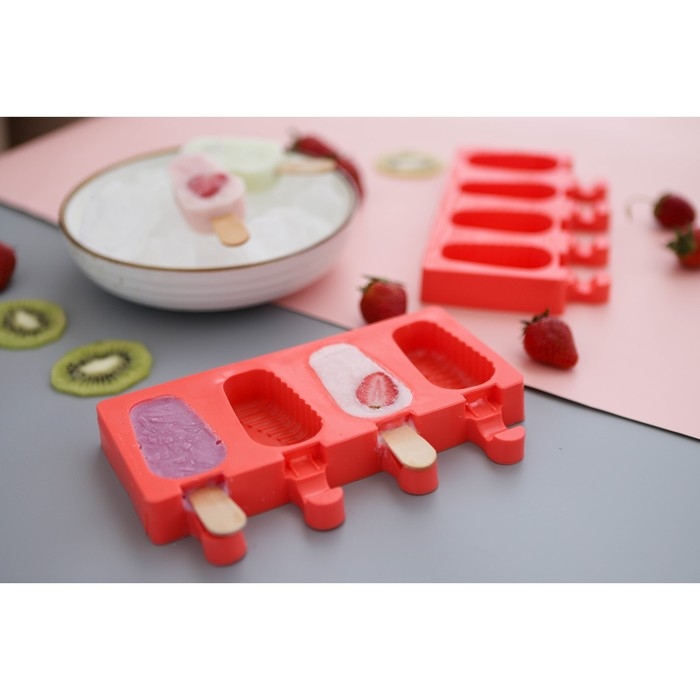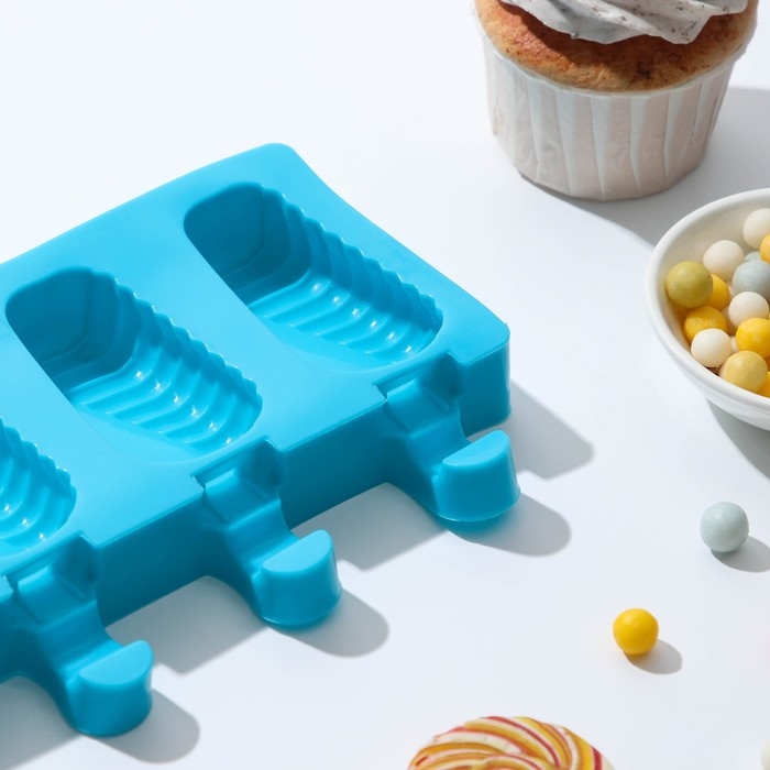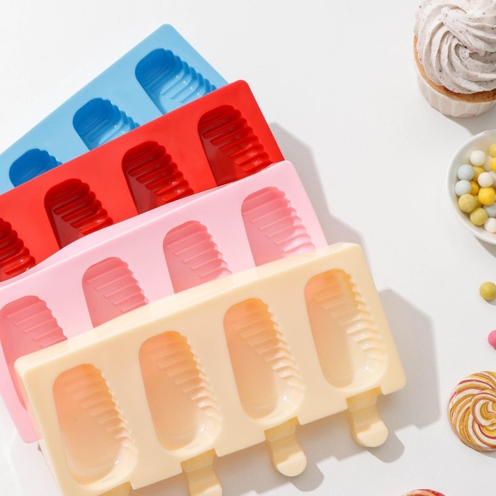 Форма для мороженого Доляна «Моника», силикон, 19,5×11 см, 4 ячейки (6,7×3,2 см), цвет МИКС