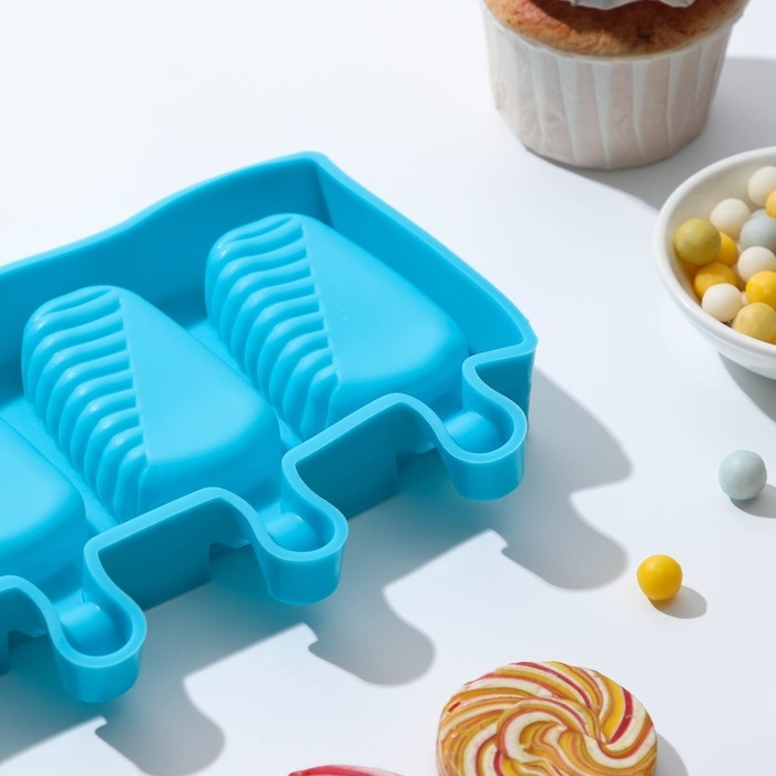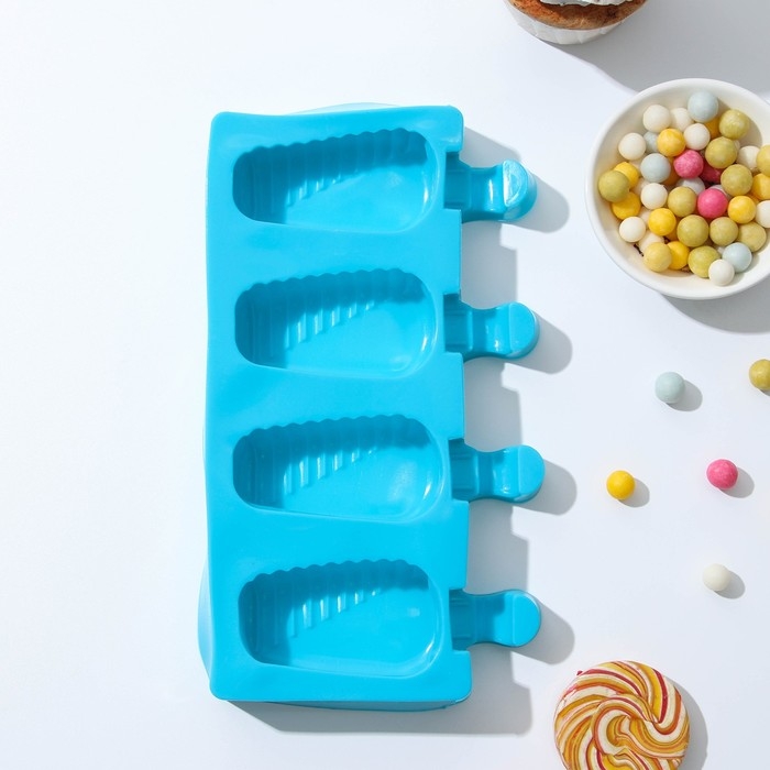 Форма для мороженого Доляна «Эскимо в глазури», силикон, 18,5×12,3×2,5 см, 4 ячейки, цвет МИКС